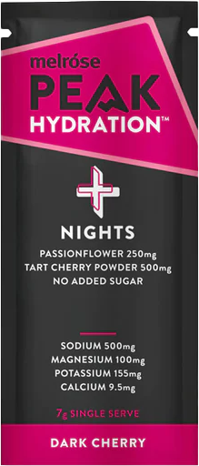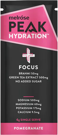 Peak Hydration’s single serve hydration sachets include 500mg of sodium, 30mg of magnesium and 100mg of potassium. This combination of essential electrolytes ensures a balanced and comprehensive approach to rehydration, supporting overall body performance and enabling individuals to perform at their peak.