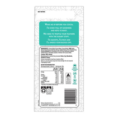 Crispy, delicious, and oh-so-keto! Our milk chocolate boasts just 2.5g of carbs per serving, making it a delightful choice for those following a low-carb lifestyle. With 7g of satisfying fats and a mere 2.1g of sugars, it's the perfect way to enjoy a guilt-free chocolatey indulgence.