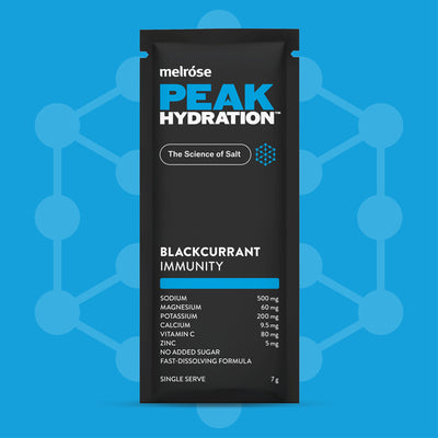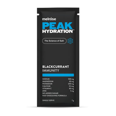 Unlock the ultimate secret to immune strength with Peak Hydration Immunity. Packed with the power of Vitamin C and Zinc, this blend boasts a vibrant blackcurrant flavor that's as delicious as it is supportive. Boost your defenses and savor the taste of resilience with every sip.