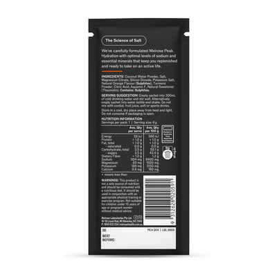 Discover the ultimate hydration secret with Peak Hydration. Packed with the natural goodness of coconut water, magnesium citrate, and the refreshing burst of Orange flavor, it's your ticket to staying energized and revitalized throughout the day. Explore the future of hydration today!