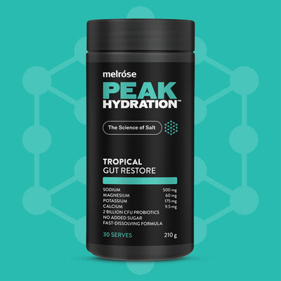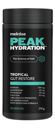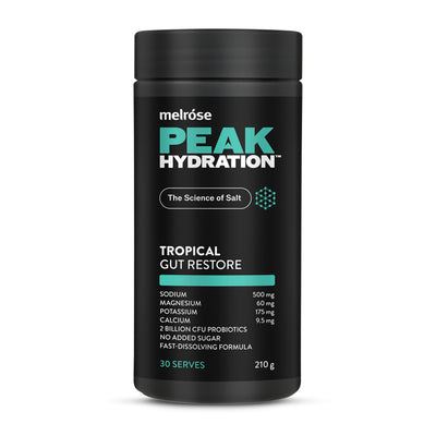 Discover the ultimate hydration and gut loving secret with Peak Hydration Gut Restore. Specifically formulated to with 2 billion probiotics per serve, our Gut Restore blend is packed with natural goodness. A fresh and crisp tropical taste - it's your secret to a healthy and happy gut.