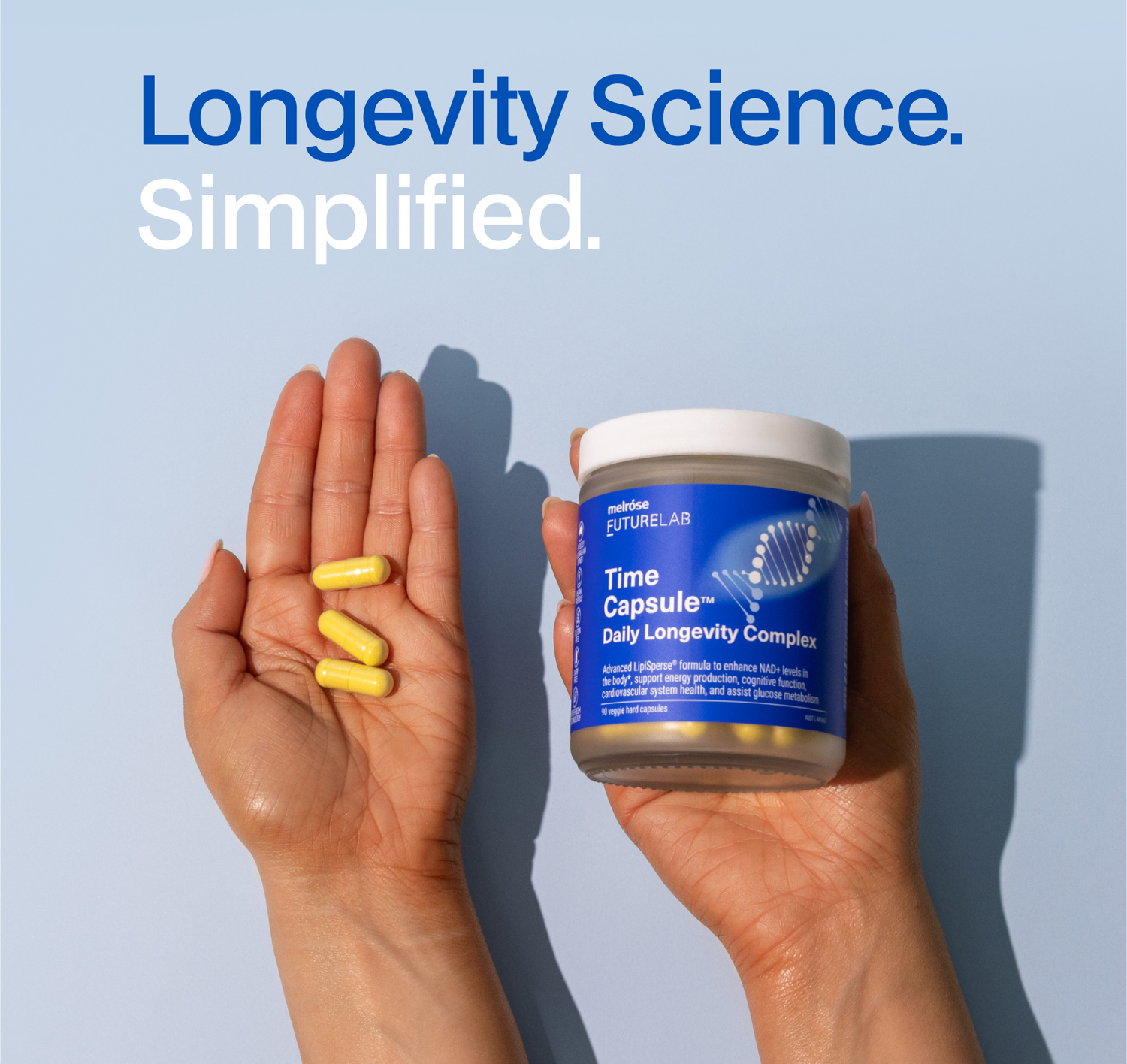 Melrose FutureLab Time Capsule™ Daily Longevity Complex is a premium all-in-one^ daily supplement formulated with key ingredients to support your general health and wellbeing as you age.